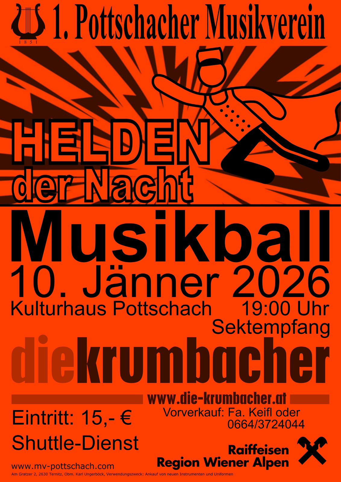 Am 10. Jänner 2026 laden wir zur ersten Veranstaltung im neuen Jahr - unter dem Motto "Helden der Nacht" - im Kulturhaus Pottschach!